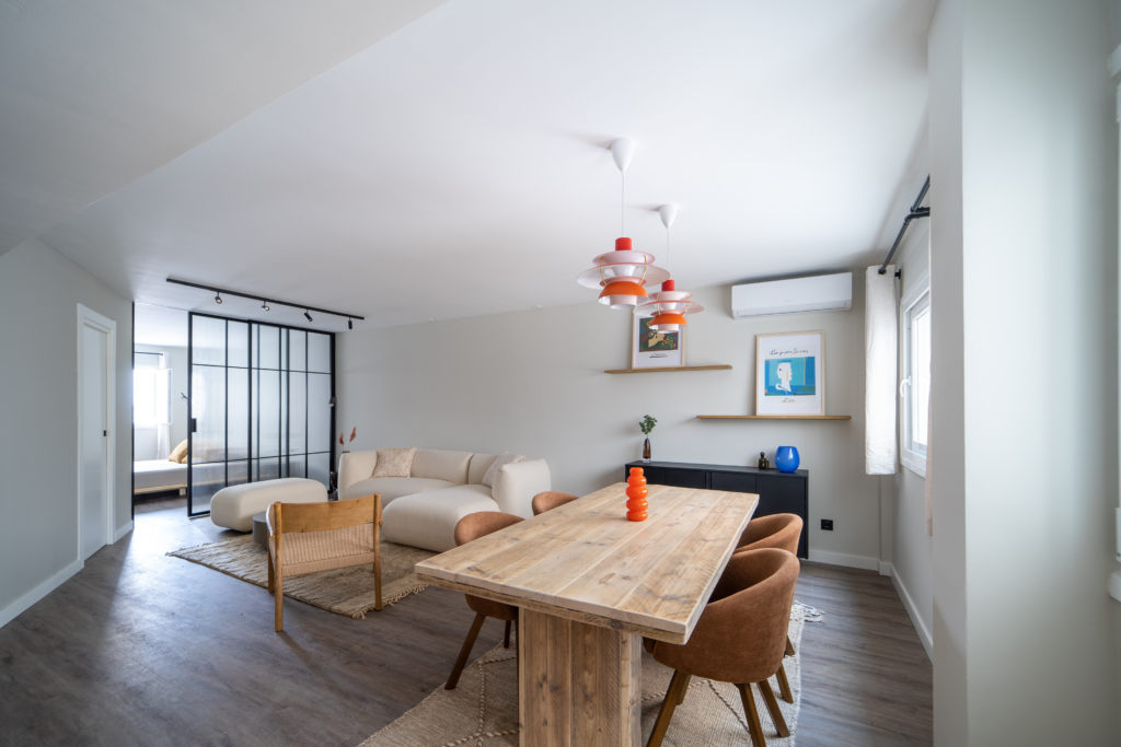 Gracias a esta intervención, el antiguo espacio de oficinas se ha convertido en un apartamento lleno de personalidad, donde la zonificación fluida, la luz natural y el aprovechamiento inteligente del espacio definen una nueva manera de habitar. Juan disfruta ahora de un hogar moderno, acogedor y perfectamente adaptado al dinamismo del barrio del Soho.